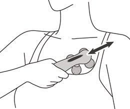 按壓腋下的同時,朝胸部中央滾動。
