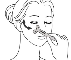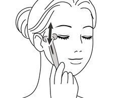 從眼睛下方到太陽穴以畫半圓重點輕柔按壓滾動。