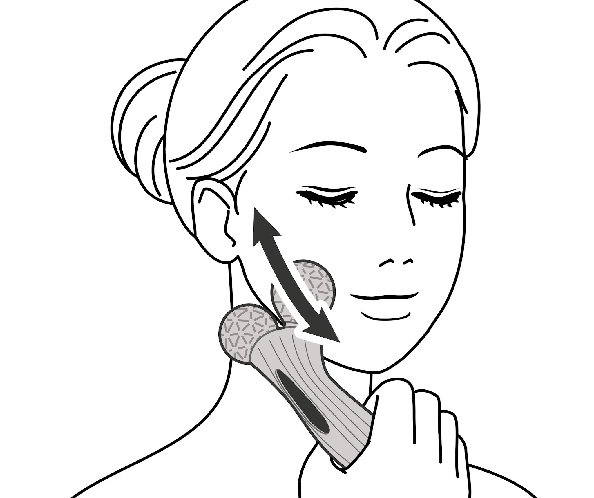 可活動式的滾輪構造實現了以最合適的護理角度進行滾動。透過增加與肌膚的接觸面※,深度且廣泛地吸附肌膚。同時,滾輪與手柄之間的緩衝構造,可緩和對肌膚帶來的多餘壓力,實現輕柔的滾動護理。