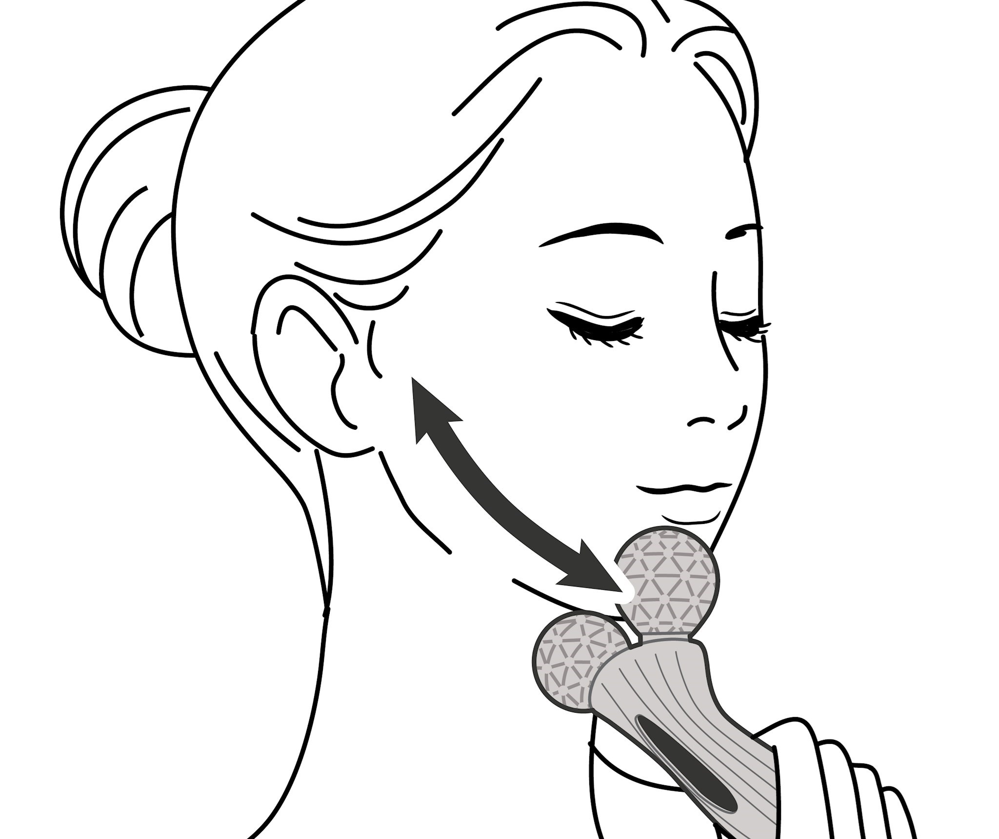 沿着臉部與身體的曲線,抓揉提拉肌膚柔軟的部位,按圖片中箭嘴所指示的方向進行往返滾動。